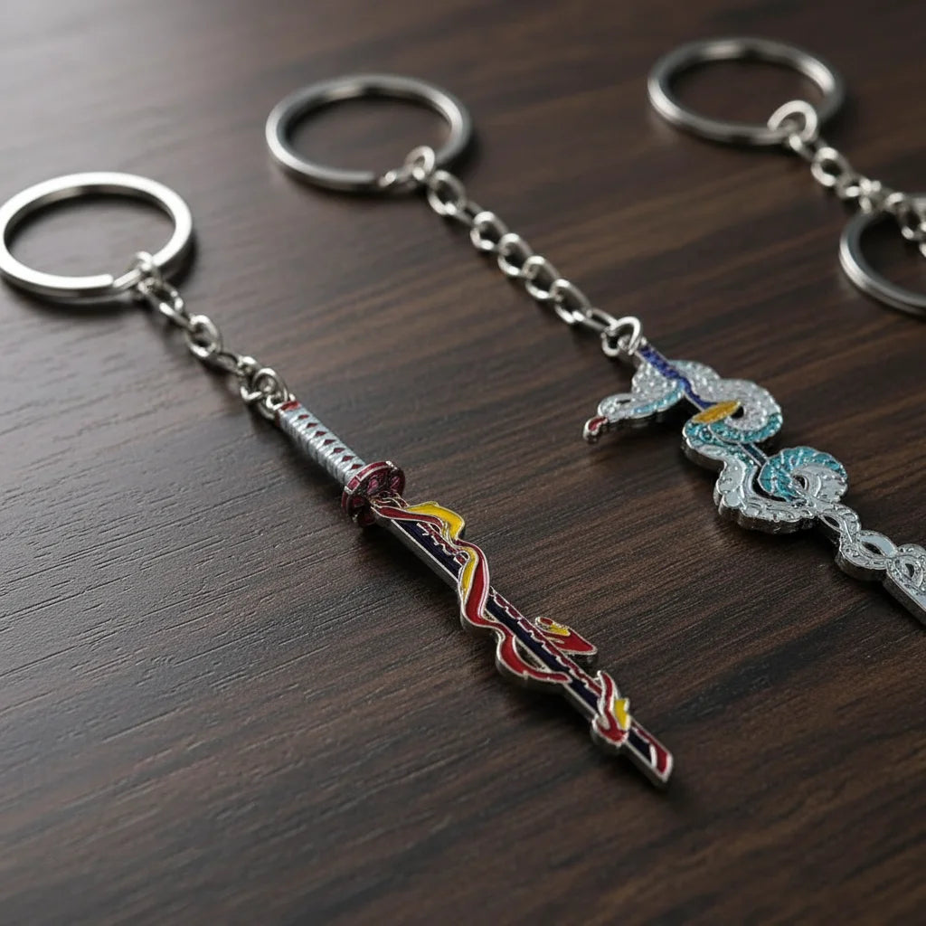 Crafted from robust metal, these keychains are designed for everyday adventures. They resist wear and tear, ensuring your favorite Demon Slayer sword stays pristine and ready to accompany you anywhere.